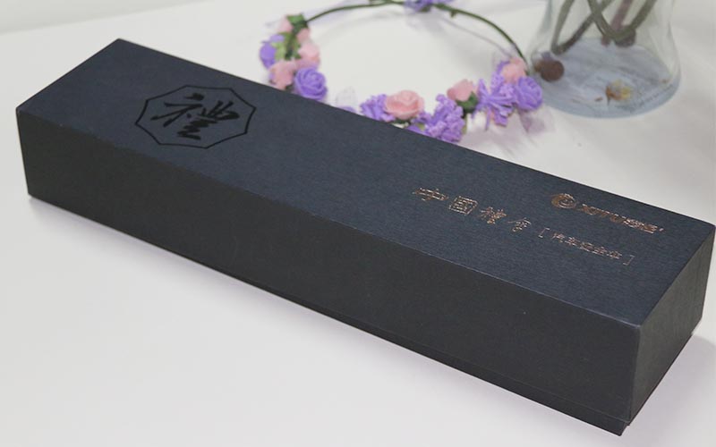 1.材質 :禮品包裝盒定制外盒封套採用黃色特種紙表面燙啞金,外盒採用180G特種進口黑色牛卡紙(上面自帶小細紋路),盒子不用印刷彩色,盒子表面局部UV,文字燙啞金,盒子爲天地盒,盒子内部放拉斯草黑色拉斯草更顯高檔。